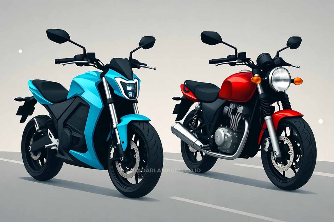 Ilustrasi motor listrik vs motor bensin-Foto: Dok. Radarlampung.co.id-