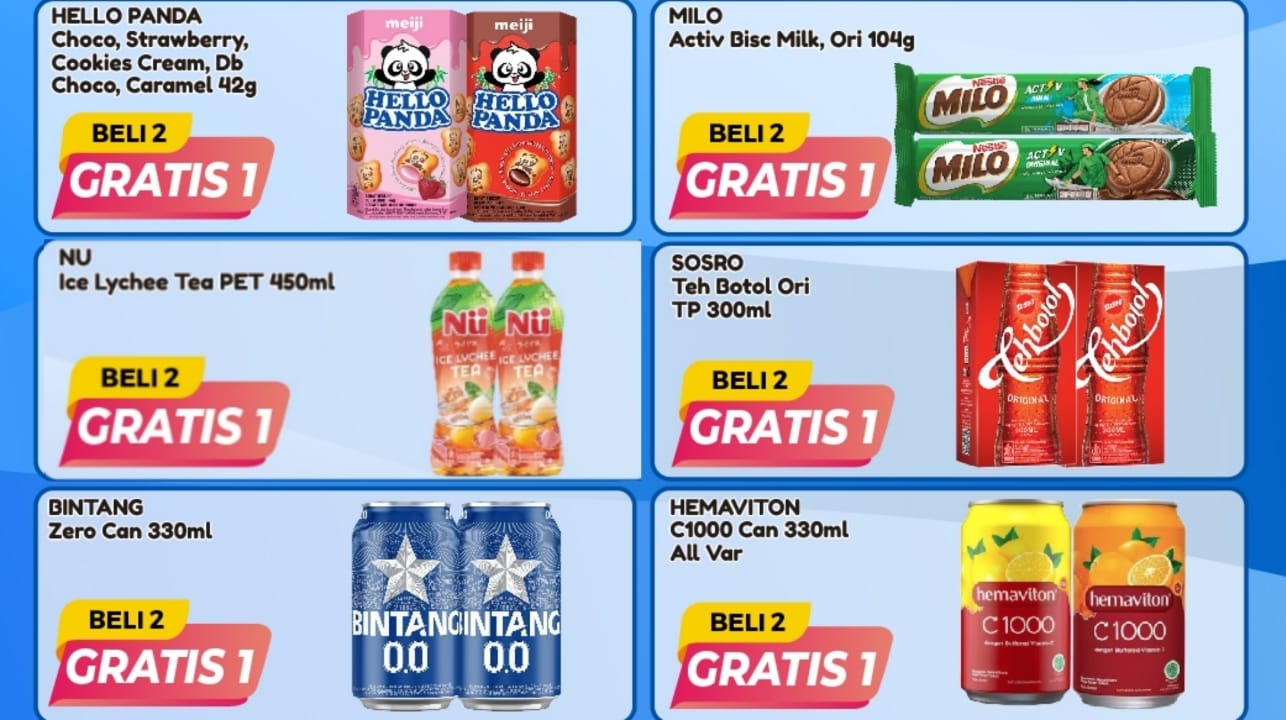- Alfamart Air Mineral pet 600ml, beli 2 gratis 1