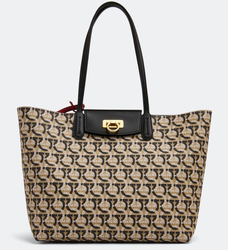 Salvatore Ferragamo Logo Jacquard Gancini Tote Bag-Banananina-