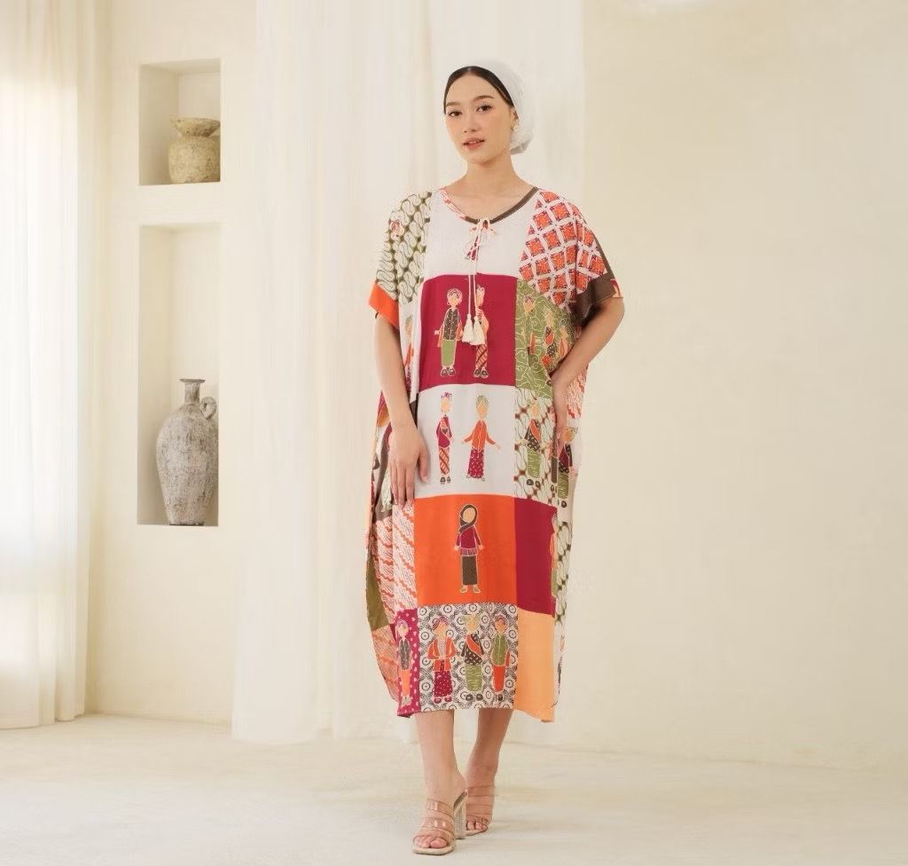 Dengan ukuran all size (LD 150 cm, panjang baju 112 cm), daster ini cocok untuk kamu yang mencari tampilan elegan dengan sentuhan etnik.