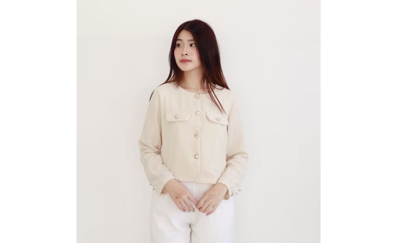 Dengan potongan crop yang stylish, blazer ini cocok untuk kamu yang ingin terlihat anggun namun tetap profesional.