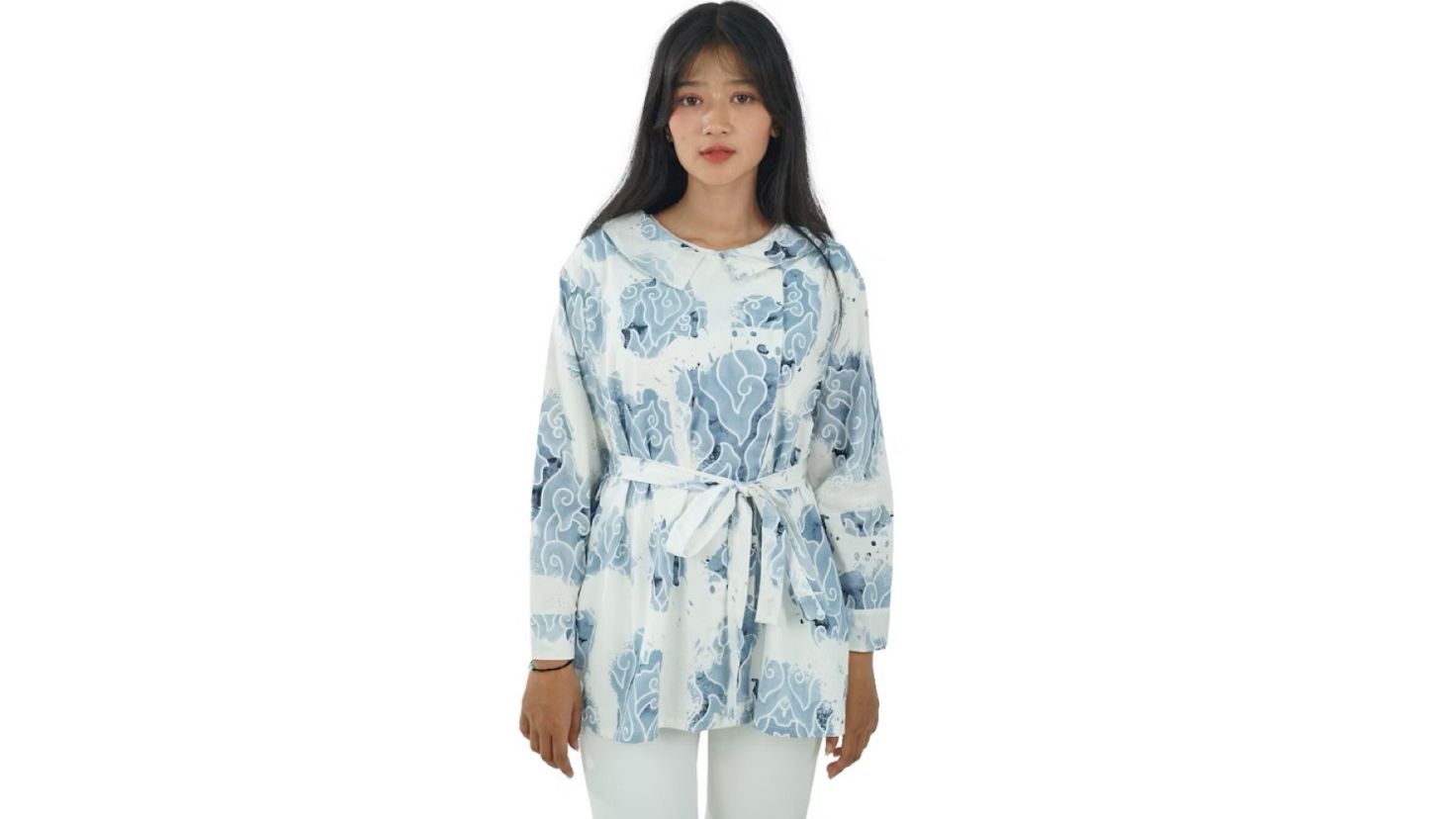 Tunik batik lurus dengan tambahan sabuk di pinggang jadi salah satu model paling digemari. Potongannya longgar tapi tetap membentuk siluet tubuh, cocok untuk berbagai bentuk tubuh .