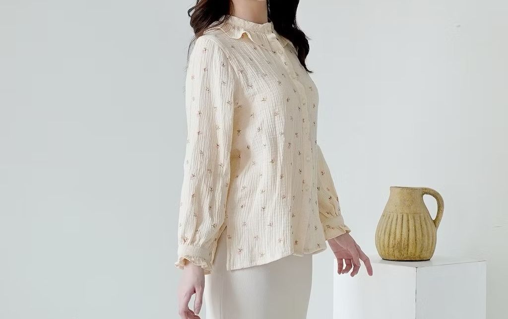 Posy Top hadir dengan sentuhan klasik yang manis lewat motif bunga dan aksen ruffle di bagian kerah. Terbuat dari bahan premium cotton foam, atasan ini terasa lembut dan ringan saat dipakai.