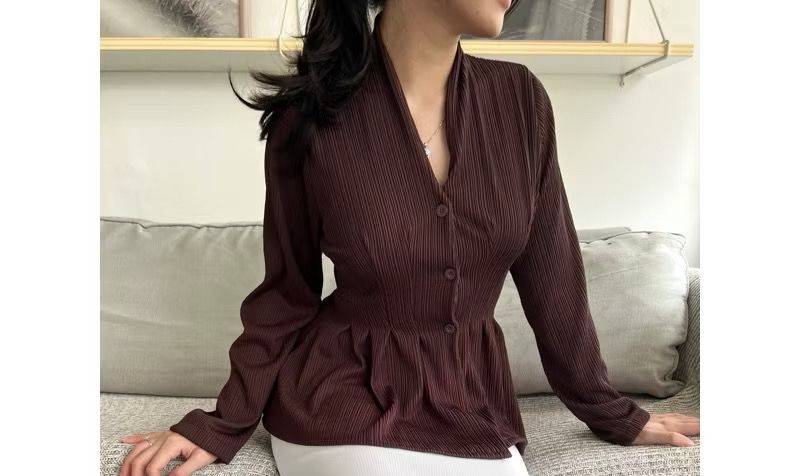 Bahan knit pleats premium yang digunakan membuat blouse ini tidak mudah kusut, nyaman dipakai, dan tetap adem meski dipakai di cuaca panas.