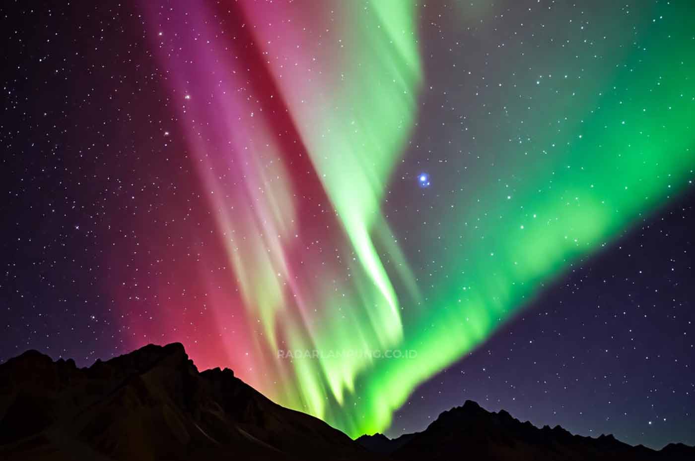 Terjadi di dekat kutub utara dan selatan, aurora muncul ketika partikel bermuatan dari Matahari bertabrakan dengan medan magnet Bumi. Benturan ini menghasilkan pancaran warna hijau, ungu, dan merah muda yang berpendar di langit malam.