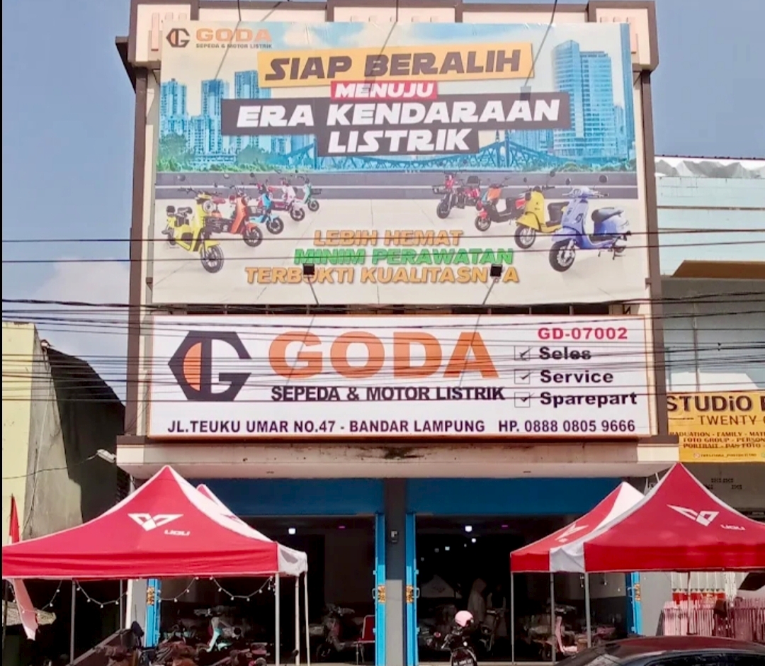 Goda Lampung, salah satu dealer resmi motor listrik di Lampung tepatnya berlokasi di Jalan Teuku Umar dekat dengan Pasar Koga Bandar Lampung.