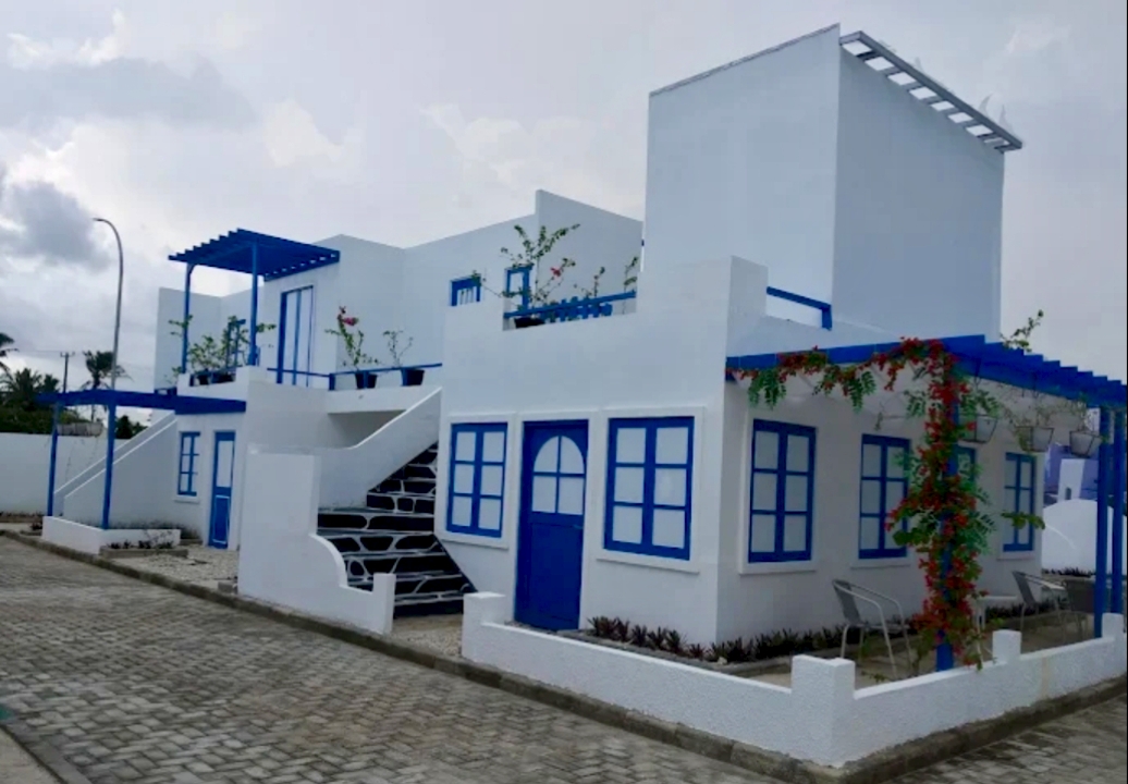 Menikmati suasana pemukiman khas eropa atau santorini yunani dengan pemandangan laut yang eksotis dengan beach pool di Jungle Sea Lampung. Ilustrasi/Foto Net--