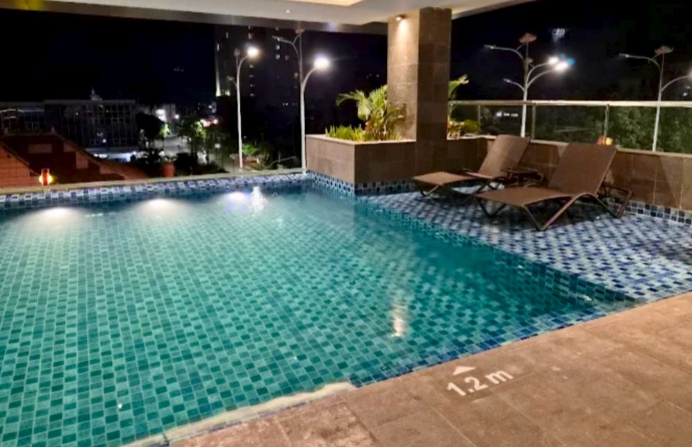 Kolam renang outdoor dan infinity pool dilantai 3. Kolam renang ini tersedia untuk tamu dewasa dan anak - anak.