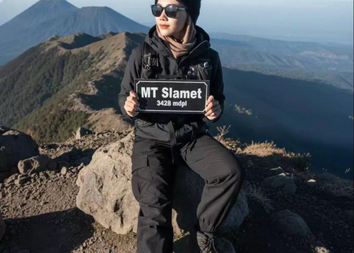 Pashmina putih yang ia kenakan berkibar lembut tertiup angin sejuk, sementara topi renda tipis di atas kepala menambah kesan anggun dan klasik.